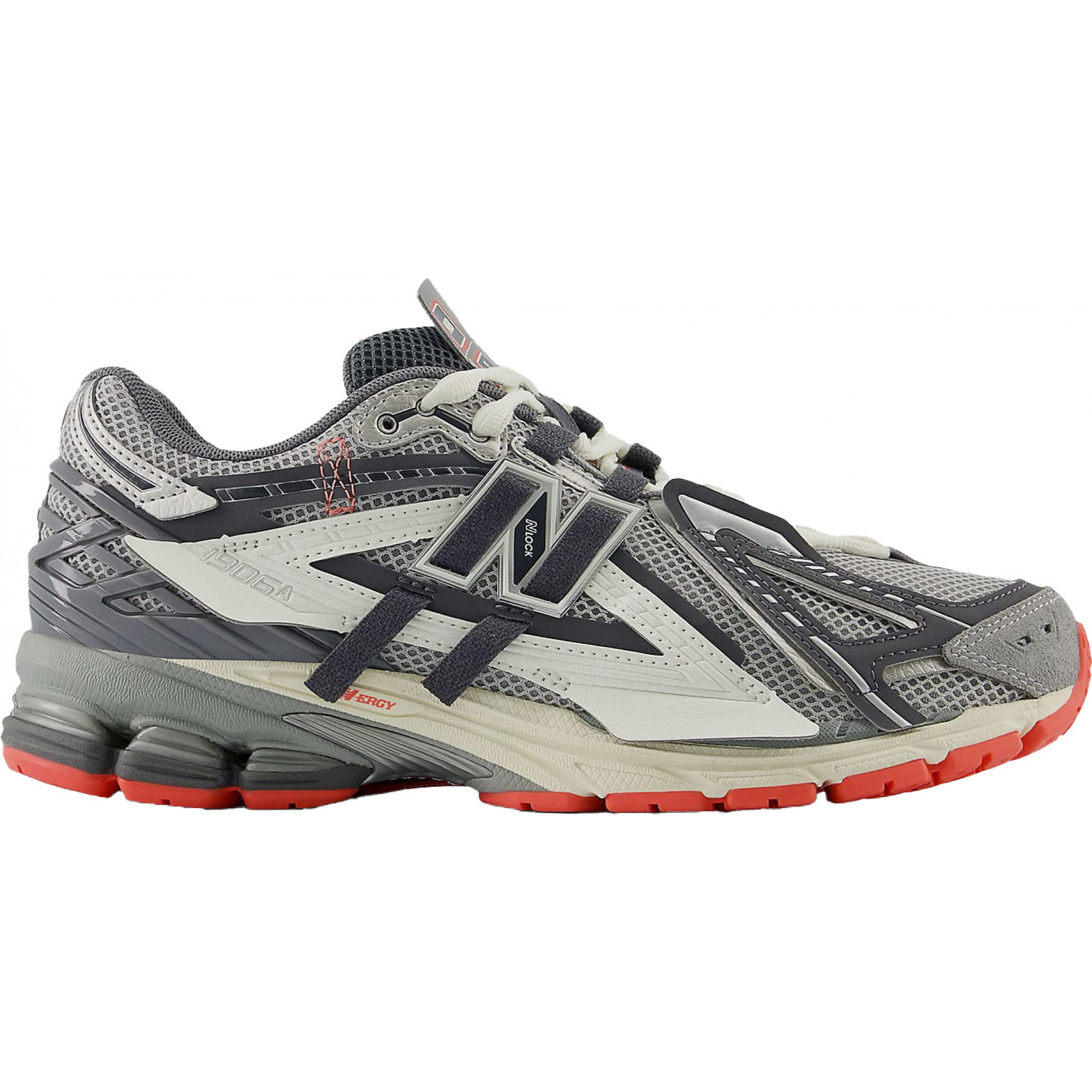 New Balance 1906A Slate Grey Drift Red — Модель в приглушённо-сером оттенке с красными акцентами, объединяющая стиль начала 2000-х и современные материалы. Верх из сетки и синтетики, плотная подошва и выразительный силуэт делают их лаконичным, но динамичным выбором.