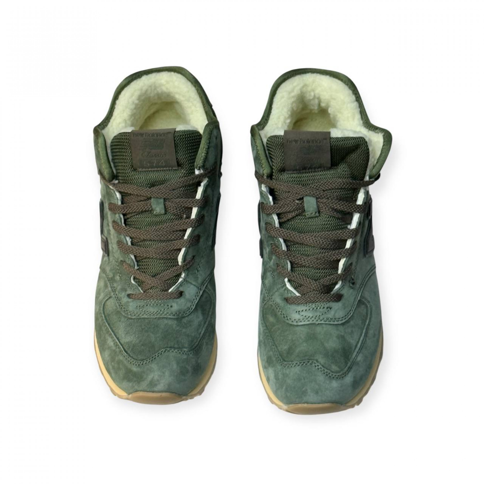 New Balance 574 Mid Dark Green с мехом — Полусапожки в насыщенном тёмно-зелёном цвете с высоким силуэтом и тёплой меховой отделкой. Подошва с протектором и амортизацией ENCAP обеспечивает устойчивость и комфорт на холодных улицах.