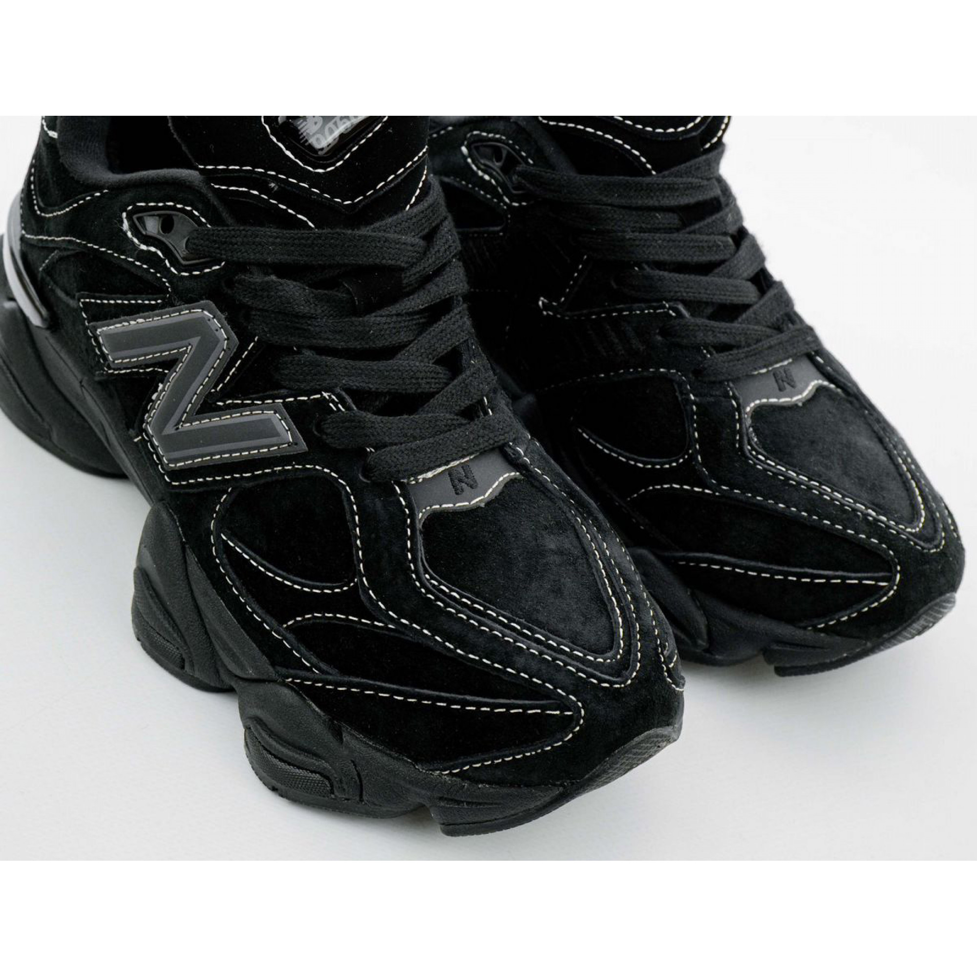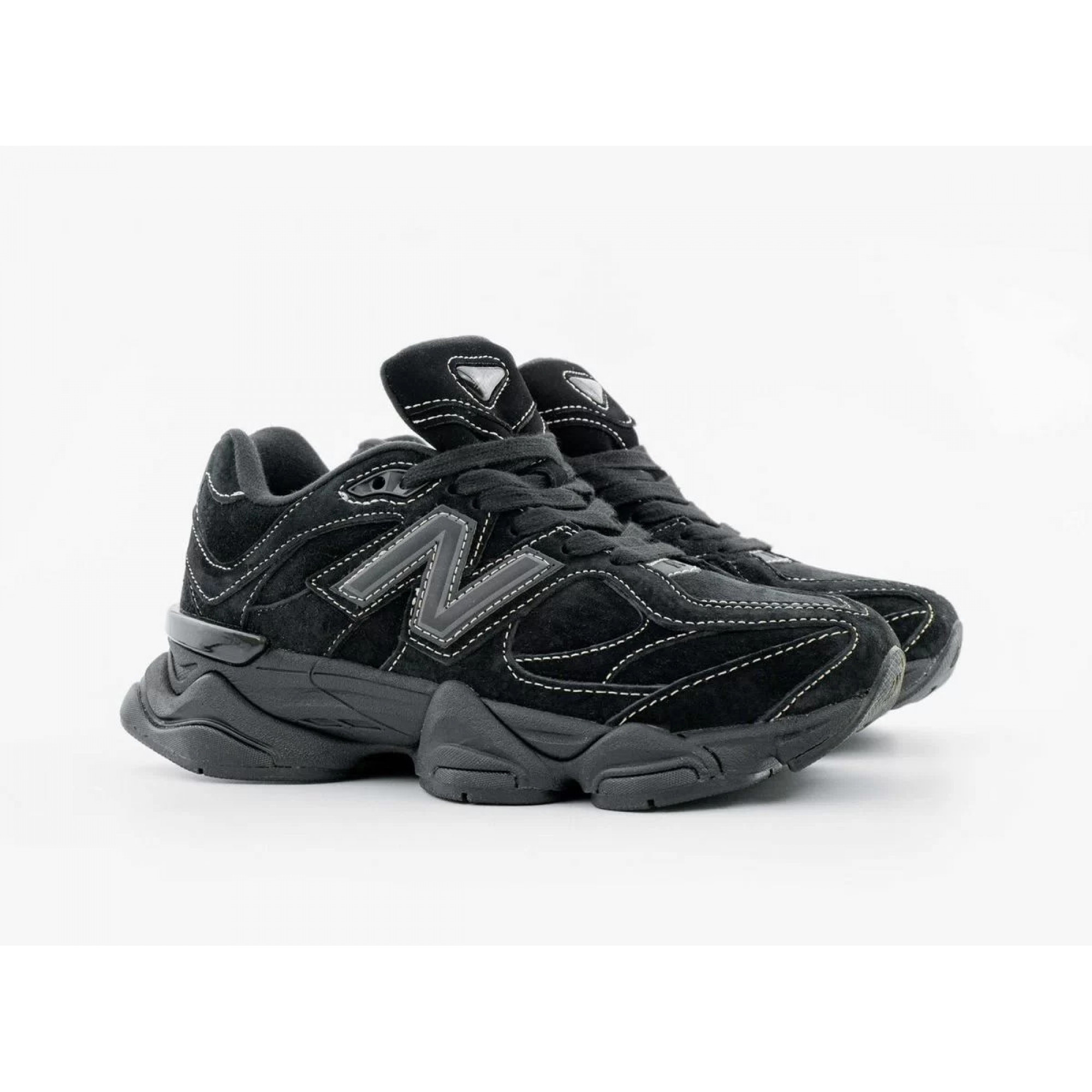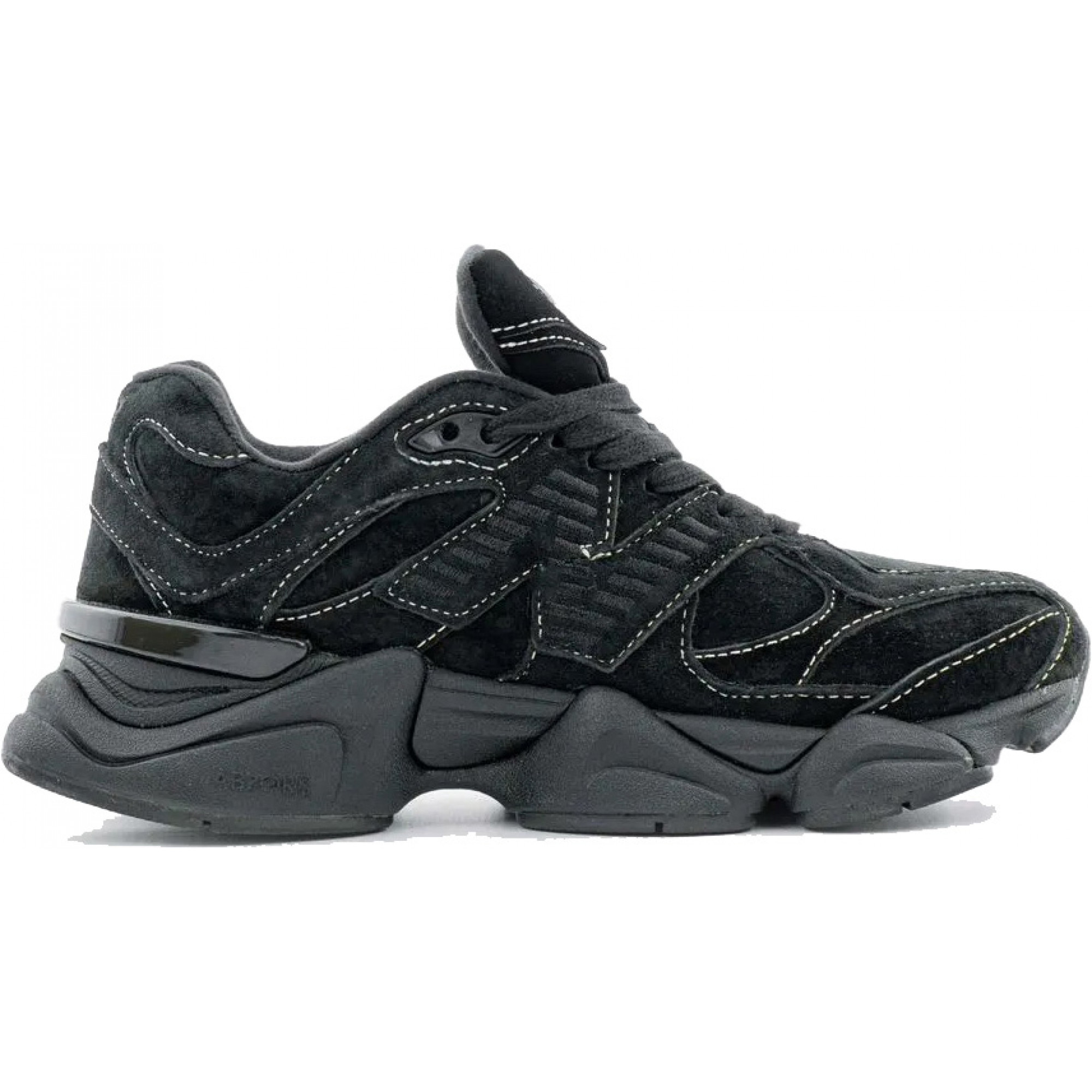 New Balance 9060 White Stitching Triple Black — Современные кроссовки с выразительным силуэтом и акцентной белой прострочкой на чёрном фоне. Массивная подошва с амортизацией ABZORB и SBS обеспечивает плавный шаг и комфорт в течение дня.